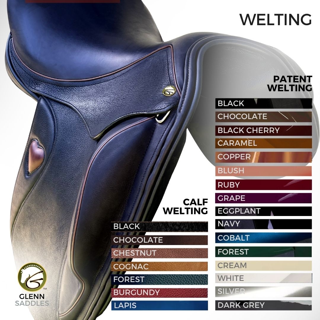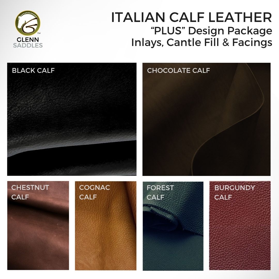 - “Plus” – Contrast color Italian Calf inlays on flaps and rear of cantle, as well as front and rear facings; accent color welting around seat and rear of cantle arch