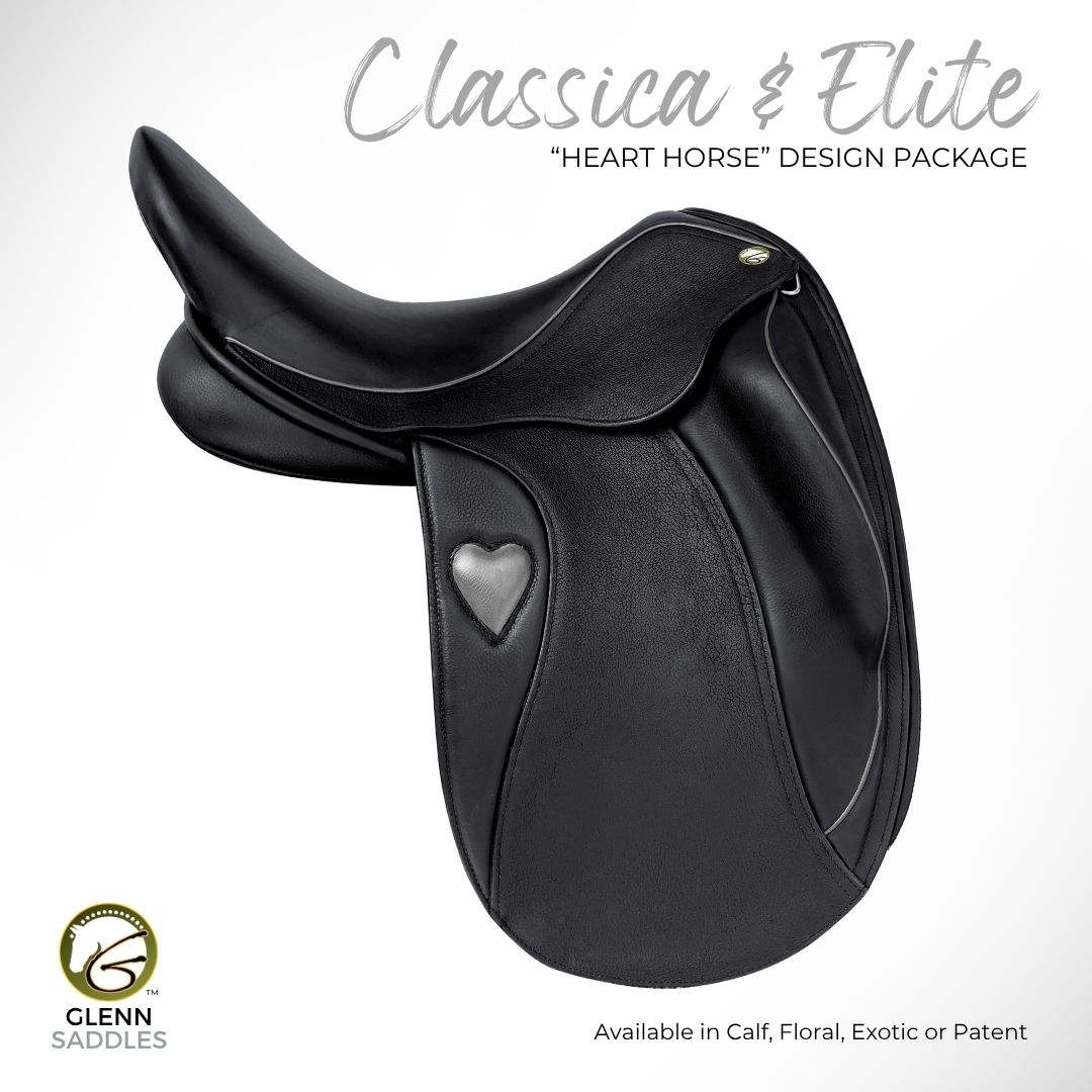 - “Heart Horse” – Dimensional heart inlays on flaps (your choice color Italian Calf, Floral tooled, Moc Croc, Patent Moc Croc, or Smooth Patent leather); accent color welting around seat and rear of cantle arch, plus upgraded accent welting on knee roll