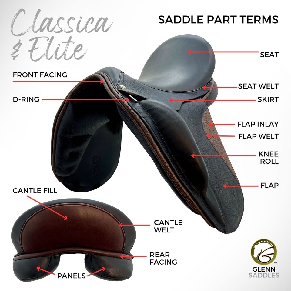 - Protective Saddle Cover – Stylish Glenn embroidery-branded cover, durable outer canvas twill with plush protective interior, included free with each new saddle